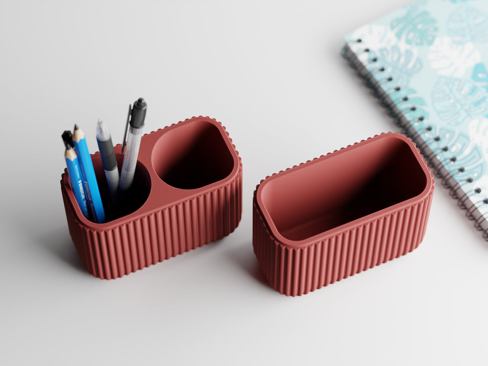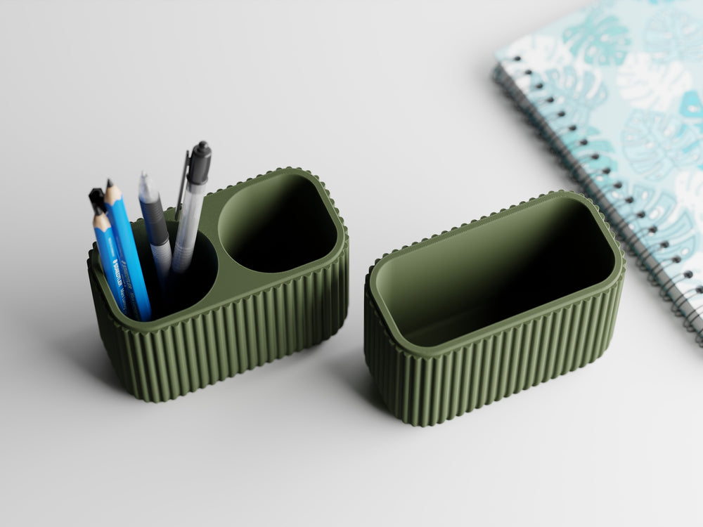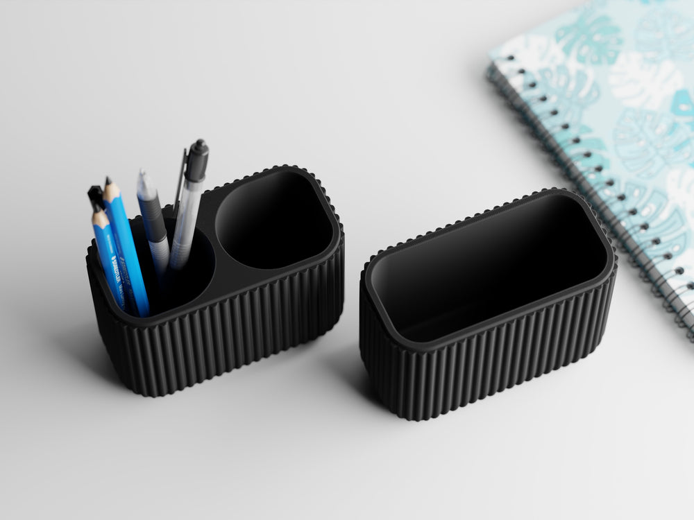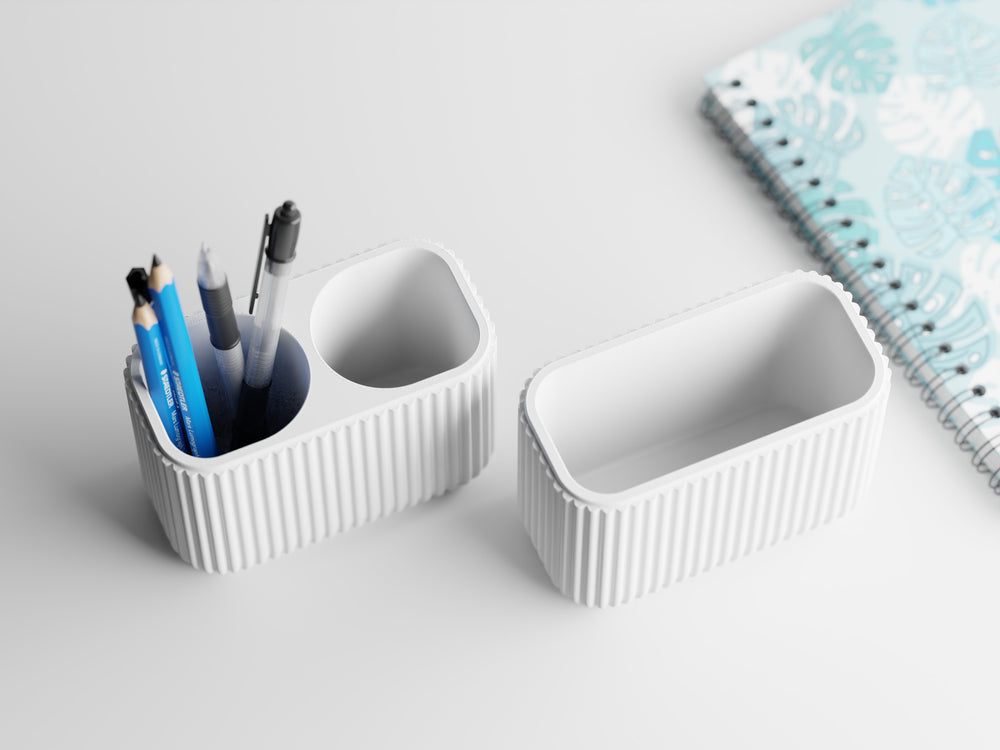 With two thoughtfully sized compartments, Elara is designed to adapt to your needs - whether you use it as a pen and stationery holder, a planter for small greens, or a stylish catch-all for everyday essentials. The subtle vertical lines give it a timeless modern look, while the proportions ensure stability and practicality