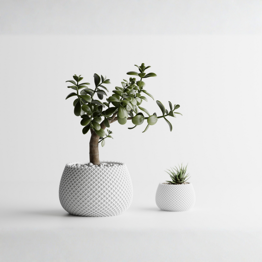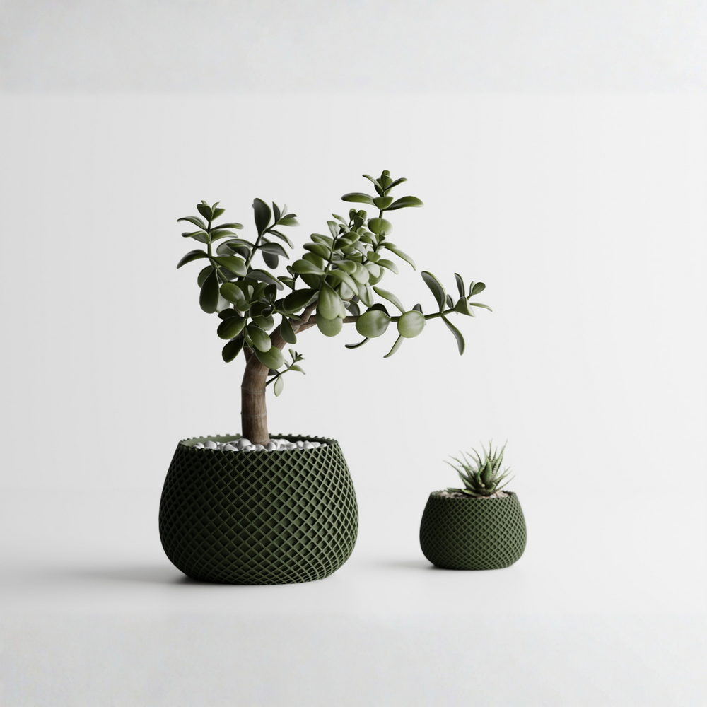 Bring style and nature together with these modern 3D-printed plant pots, featuring a sleek lattice texture that elevates any plant display. Perfect for succulents, bonsai, or indoor greenery, these planters blend minimalism and design innovation.