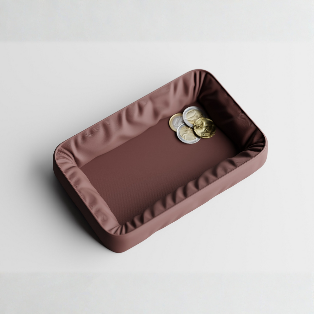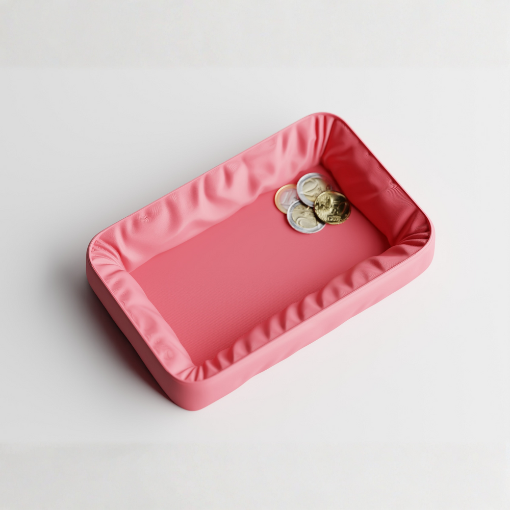 This soft-touch 3D printed valet tray features smooth, organic edges that mimic fabric while keeping the structure firm and precise. Perfect for your desk, dresser, or entryway, it holds your keys, coins, and daily essentials with quiet sophistication.